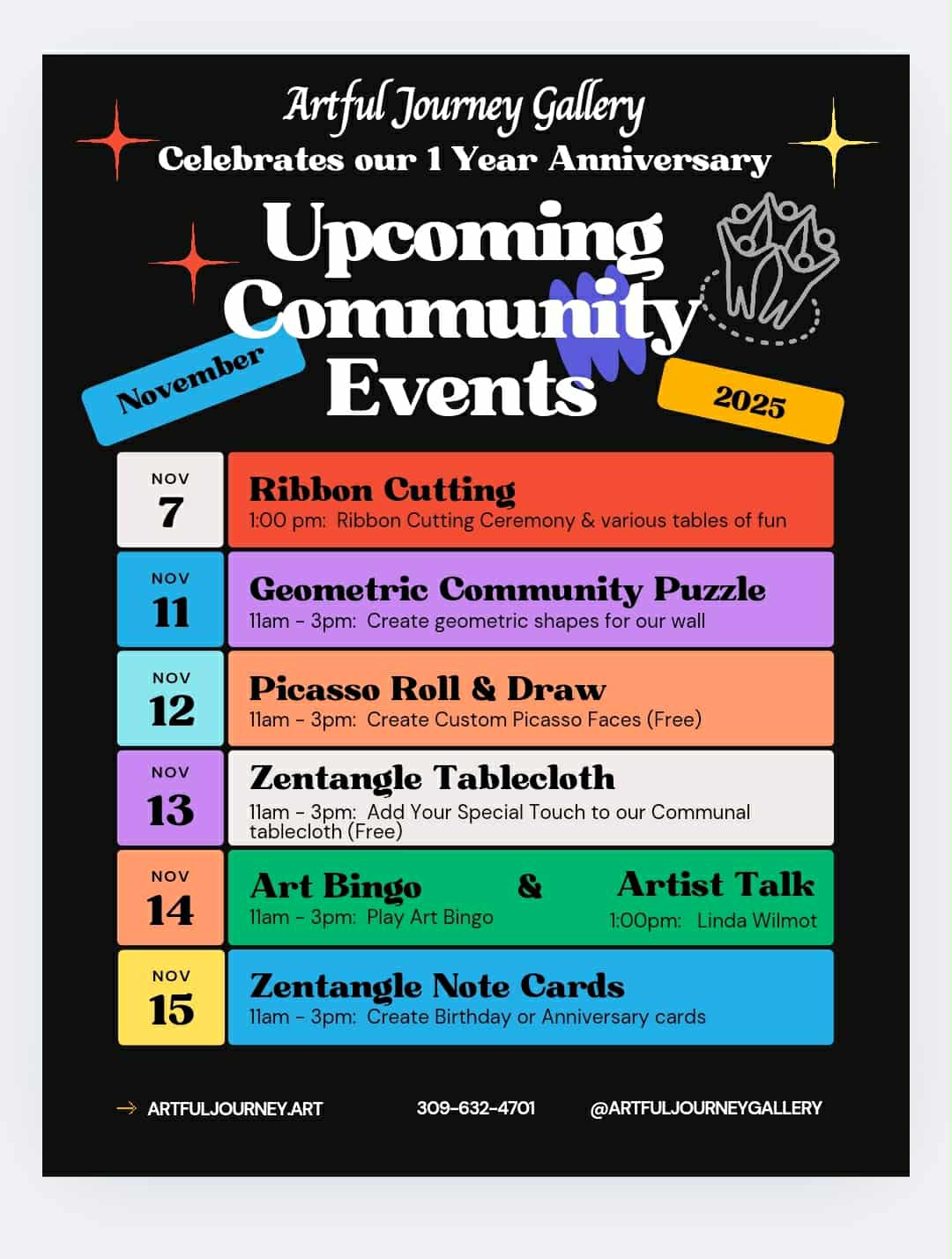 Nov 11 - 15th will be filled with many (free) events AND each time you come in, you will get your card punched!